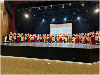Her yöreden oyunların sergilendiği gösteride çok kalabalık olan dans grubunun bitmek tükenmek bilmeyen enerjileri ile kostümlerin zenginliği harikaydı.