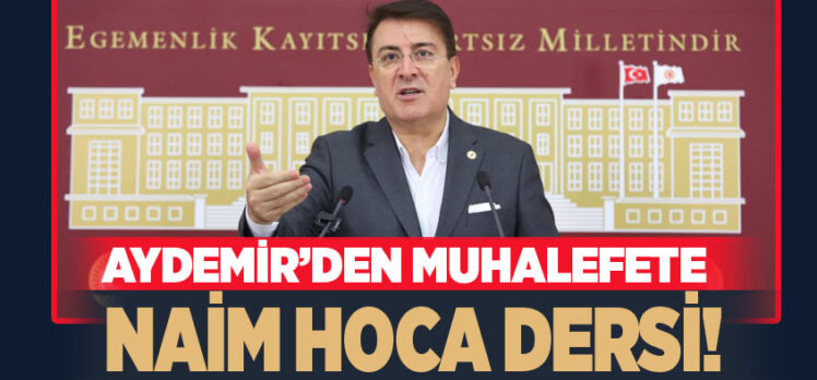 Milletvekili Aydemir, Dezenformasyon Yasasını eleştirenlere, Naim Hoca’nın, ‘Söz kantardır, insanı tartar/ İyi konuşursan şerefin artar/ Sükut edersen vakarın artar/Yalan söylersen ocağın batar‘ dizeleriyle cevap verdi.