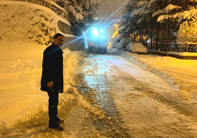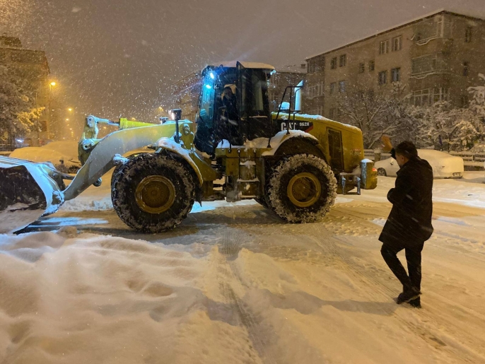 Erzurum’u etkisi altına alan ve kar kalınlığının 58 santimetreye ulaştığı yoğun yağış sonrası, Yakutiye Belediyesi karla mücadele ekipleri teyakkuza geçti. Hayatı durma noktasına getiren kar esaretine karşı çalışmaları bizzat yöneten Yakutiye Belediye Başkanı Mahmut Uçar, gece yarısından sahur vaktine kadar ekiplerin başından ayrılmadı.