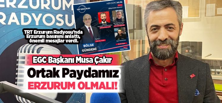 Erzurum Gazeteciler Cemiyeti Başkanı Mehmet Musa Çakır, TRT Erzurum Radyosu’nun program konuğu oldu. Selma Talar’ın hazırlayıp, Yıldıray Yıldız’ın sunduğu Bölge Gündemi programında; EGC yayınları arasında yer bulan “Anılarla Erzurum Basını” adlı kitabı anlatan Çakır, yanı sıra mesleki dayanışma, birlik ve beraberlik mesajları verdi. Yıldız’ın sorularını yanıtlayan EGC Başkanı Çakır, Erzurum basını tarifiyle büyük beğeni topladı. Erzurum basınının refleksi güçlü, hafızası diri ve memleketine karşı sorumluluk duygusu çok yüksek bir kimliğe sahip olduğunu belirten Çakır, “Farklı görüşler, farklı duruşlar elbette olacak, bu işin doğasında var. Ama Erzurum basınının ortak bir paydası var ki, o da şehre karşı duyulan sorumluluktur” diye konuştu.