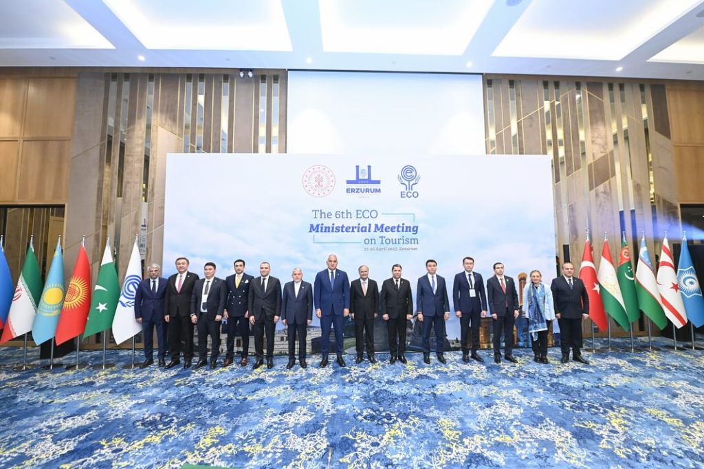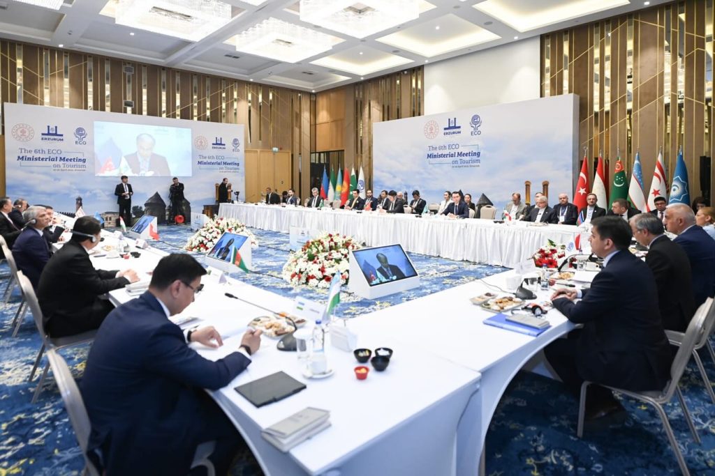 2025 yılı EİT Turizm Başkenti olarak seçilen Erzurum’da düzenlenen, Ekonomik İşbirliği Teşkilatı 6. Turizm Bakanları Toplantısı Kültür ve Turizm Bakanı Mehmet Nuri Ersoy’un moderatörlüğünde, Kuzey Kıbrıs Türk Cumhuriyeti Başbakan Yardımcısı ve Turizm, Kültür, Gençlik ve Çevre Bakanı Fikri Ataoğlu, İran İslam Cumhuriyeti Kültür, Miras, Turizm ve El Sanatları Bakanı Seyed Reza Salehi Amiri, Türkmenistan Kültür Bakanı Atageldi Shamyradov, Türkiye Kültür ve Turizm Bakan Yardımcısı Nadir Alpaslan, Kazakistan Cumhuriyeti Turizm ve Spor Bakan Yardımcısı Yerzhan Yerkinbayev, Azerbaycan Cumhuriyeti Devlet Turizm Ajansı Başkanı Fuad Naghiyev, Kırgız Cumhuriyeti Ekonomi ve Ticaret Bakanlığı’na bağlı Turizm Dairesi Müdürü Kasymov Erdenet, Pakistan İslam Cumhuriyeti Milletvekili Ali Zahid, Tacikistan Cumhuriyeti Turizm Geliştirme Komitesi Başkan Yardımcısı Ziyodullo Salimzoda, Özbekistan Turizm Komitesi Başkanı Umid Shadiev, Türk Devletleri Teşkilatı Genel Sekreteri Büyükelçi Kubanychbek Omuraliev ile Ekonomik İşbirliği Teşkilatı Genel Sekreteri Büyükelçi Asad Majeed Khan’ın katılımıyla gerçekleşti.