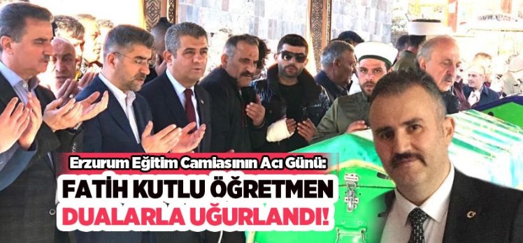 Bir süredir tedavi gören Eğitim camiasın sevileni Erzurum Kalkınma Vakfı (ER-VAK) Gençlik Kolları Başkanı sınıf öğretmeni Fatih Kutlu son yolculuğuna uğurlandı. Kutlu’nun Narmanlı Camii’nde kılınan cenaze namazına Erzurum Valisi Aydın Baruş, AK Parti İl Başkanı Av. İbrahim Küçükoğlu, Atatürk Üniversitesi Rektör Yardımcısı Prof. Dr. Hasan Türkez, Milli Eğitim Müdürü Süleyman Ekici, Büyükşehir Belediyesi Genel Sekreter Yardımcısı Köksal Yavuz, MHP İl Başkan Yardımcısı Cihan Aksakal, Ülkü Ocakları İl Başkanı Mevlüt Özcan, Erzurum Kalkınma Vakfı Başkanı Erdal Güzel, Kutlu’nun ailesi, Sivil toplum örgütlerinin temsilcileri ve çok sayıda vatandaş katıldı. Fatih Kutlu’nun cenazesi ikindi namazına müteakip kılınan cenaze namazının ardından Asri Mezarlığı’ndaki aile kabristanında defnedildi.