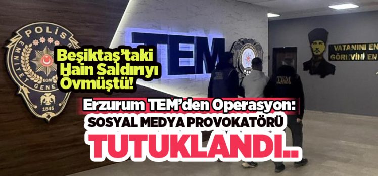Edinilen bilgiye göre, önceki gün İstanbul ili Beşiktaş ilçesinde bulunan Yapı Kredi Plaza blokları önünde görev yapan Polis ekipleriyle silahlı çatışmaya giren şahısları ve eylemlerini övücü mahiyette sosyal medya üzerinde paylaşım yapan M.A isimli şahıs Horasan İlçesinde düzenlenen operasyonel çalışma neticesinde yakalanarak gözaltına alındı. Şahıs, TEM Şube Müdürlüğünce tamamlanan ifade işlemleri akabinde mevcutlu olarak çıkarıldığı mahkemece tutuklanarak cezaevine gönderildi.