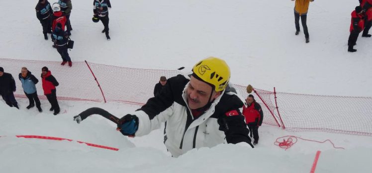 Erzurum Valisi Mustafa Çiftçi, Palandöken Kayak Merkezi’nde yapılan yapay buz duvarına tırmandı.