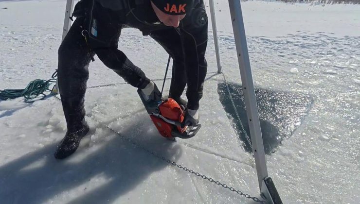 Erzurum İl Jandarma Komutanlığı Sualtı Arama Kurtarma (SAK) Tim Komutanlığı, zorlu kış şartlarında görev bilinciyle buz tutmuş Tekederesi Göleti’nde dalış eğitimi gerçekleştirdi.
