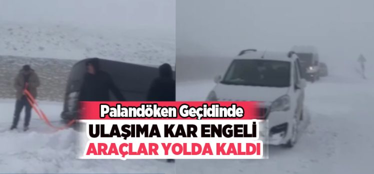 Erzurum-Tekman kara yolu Palandöken geçidinde kar yağışı sonrası bazı araçlar yolda kaldı. Buzlanma nedeniyle yolda ilerlemekte güçlük çeken sürücüler, yoldan geçen diğer sürücülerin halat yardımıyla çekilerek kurtarıldı.