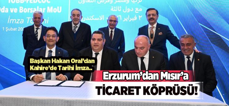 Cumhurbaşkanı Recep Tayyip Erdoğan’ın Mısır ziyaretine eşlik eden TOBB heyetinde yer alan Erzurum Ticaret Borsası Başkanı Yıldırım Hakan Oral, iki ülke arasındaki 15 milyar dolarlık ticaret hedefi kapsamında North Sinai (Kuzey Sina) Ticaret Odası ile kapsamlı bir iş birliği protokolü imzaladı. Türkiye ile Mısır arasındaki diplomatik ilişkilerin en üst seviyeye taşınması ve ticari ortaklıkların güçlendirilmesi amacıyla gerçekleştirilen Mısır programında Erzurum rüzgarı esti. Cumhurbaşkanı Recep Tayyip Erdoğan ve Mısır Cumhurbaşkanı Abdülfettah Es-Sisi’nin katılımıyla gerçekleşen tarihi İş Forumu öncesinde önemli temaslarda bulunan Erzurum Ticaret Borsası (ETB), şehri kalkındıracak stratejik bir anlaşmaya imza attı. Cumhurbaşkanı Erdoğan’ın güçlü liderliği ve diplomatik vizyonuyla şekillenen yeni dönemde, iki ülke arasındaki ticaret hacminin 9 milyar dolardan 15 milyar dolara çıkarılması hedefi belirlendi. Bu vizyon doğrultusunda, Türk iş dünyasının çatı kuruluşu TOBB’un Başkanı M. Rifat Hisarcıklıoğlu’nun liderliğindeki heyette, Erzurum Ticaret Borsası Yönetim Kurulu Başkanı Yıldırım Hakan Oral da yerini aldı. TOBB Başkanı M. Rifat Hisarcıklıoğlu öncülüğündeki heyet, Mısır Ticaret ve Sanayi Odaları Federasyonu Başkanı Ahmet Al Wakil ve Genel Sekreter Dr. Alaa Ezz’in ev sahipliğinde düzenlenen “Türkiye-Mısır Üçüncü Ülkelerde İş Birliği” toplantısına katıldı. Afrika kıtası başta olmak üzere üçüncü ülkelerdeki yatırım fırsatlarının değerlendirildiği toplantıda, Erzurum’un üretim potansiyelinin bu yeni pazarlara entegrasyonu ele alındı.