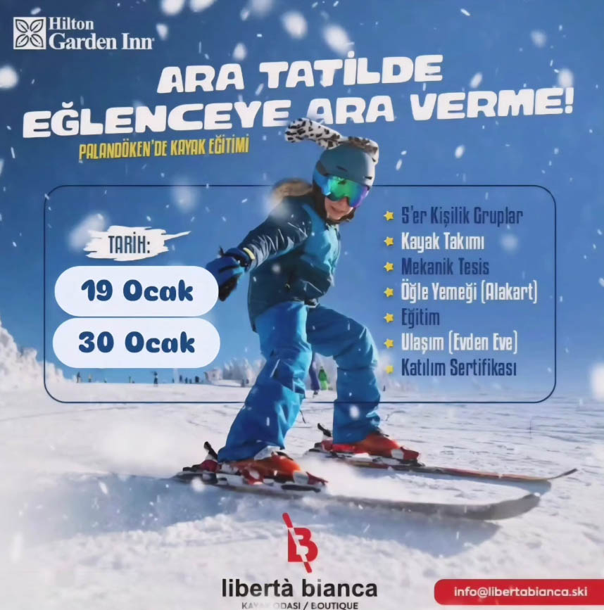 Erzurum kış turizminin merkezi Palandöken, bu ara tatilde alışılmışın dışında bir eğitim kampına ev sahipliği yapmaya hazırlanıyor. 19–30 Ocak tarihleri arasında gerçekleşecek olan Liberta Bianca Kayak Eğitim Programı, sunduğu “her şey dahil” konseptiyle kış sporlarına yeni bir soluk getiriyor.